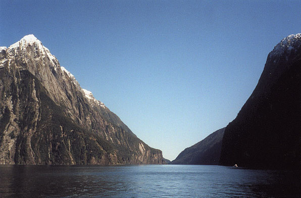 那中间的亮光,难道是第二个太阳升起?摄于Milford Sound。