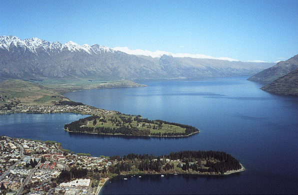 Queenstown 与 Wakatipu 湖。摄于Queenstown。